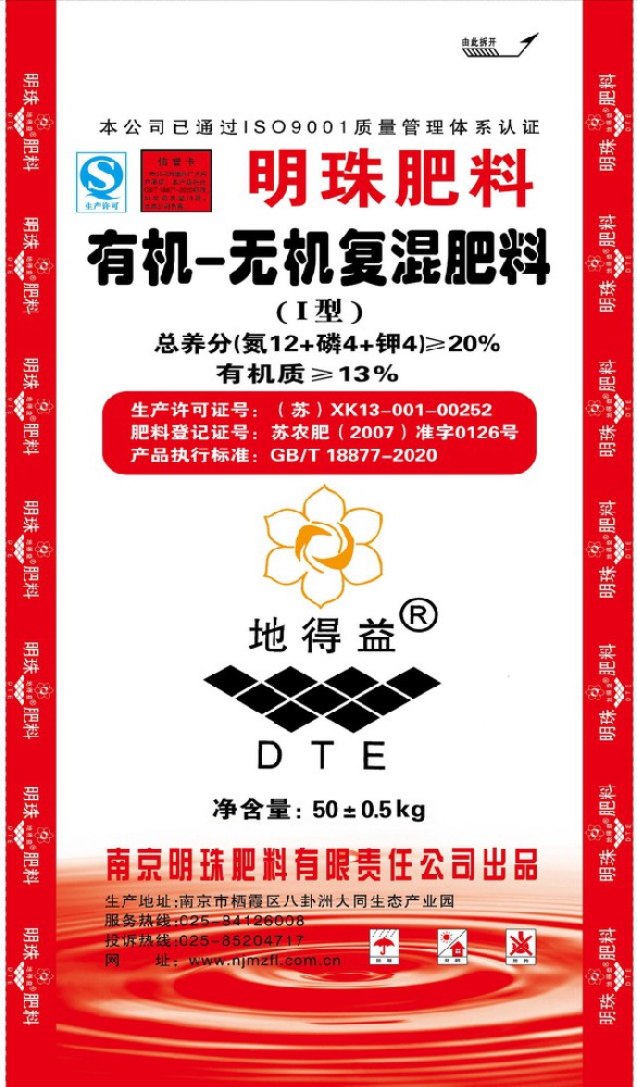 主要技术参数:12N+4P2O5+4K2O≥20%,有机质≥13% 执行标准:GB/T 18877-2020 产品外观:黑褐色圆颗粒 一、产品说明: “地得益”牌有机-无机复混肥料是以N、P、K为主要···