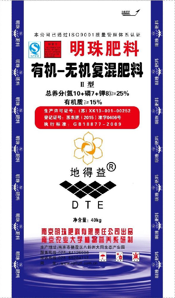 主要技术参数:10N+7P2O5+8K2O≥25%,有机质≥10% 执行标准:GB/T 18877-2020 产品外观:黑褐色圆颗粒 一、产品说明: “地得益”牌有机-无机复混肥料是以N、P、K为主要···