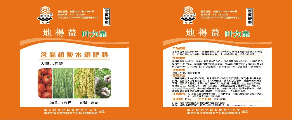 本品系含腐植酸水溶肥料(大量元素型)液体水溶肥料,本产品既可冲施又可做叶面肥喷施,使用后可使农作物产量提高品质改善。本产品和杀虫剂混合使用时可提高药效。产品经过试验示范,能充分表明该腐植酸水溶肥料对提···